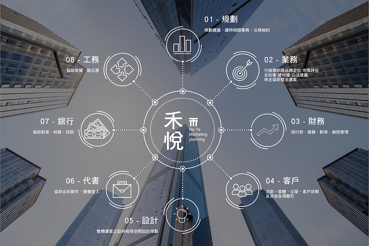 禾悅廣告是由一群在房地產領域擁有豐富經驗的年輕專才所共同組成的團隊。我們擁抱創新思維,致力於讓每位員工成為事業的夥伴,共同在公司中茁壯成長。我們秉持著「專業」、「行銷策略」、「創新」的經營理念,專注於房地產領域,致力於為客戶打造更全面的服務願景。我們以高標準要求自己,並以此激勵著我們於2022年創立了禾悅廣告。